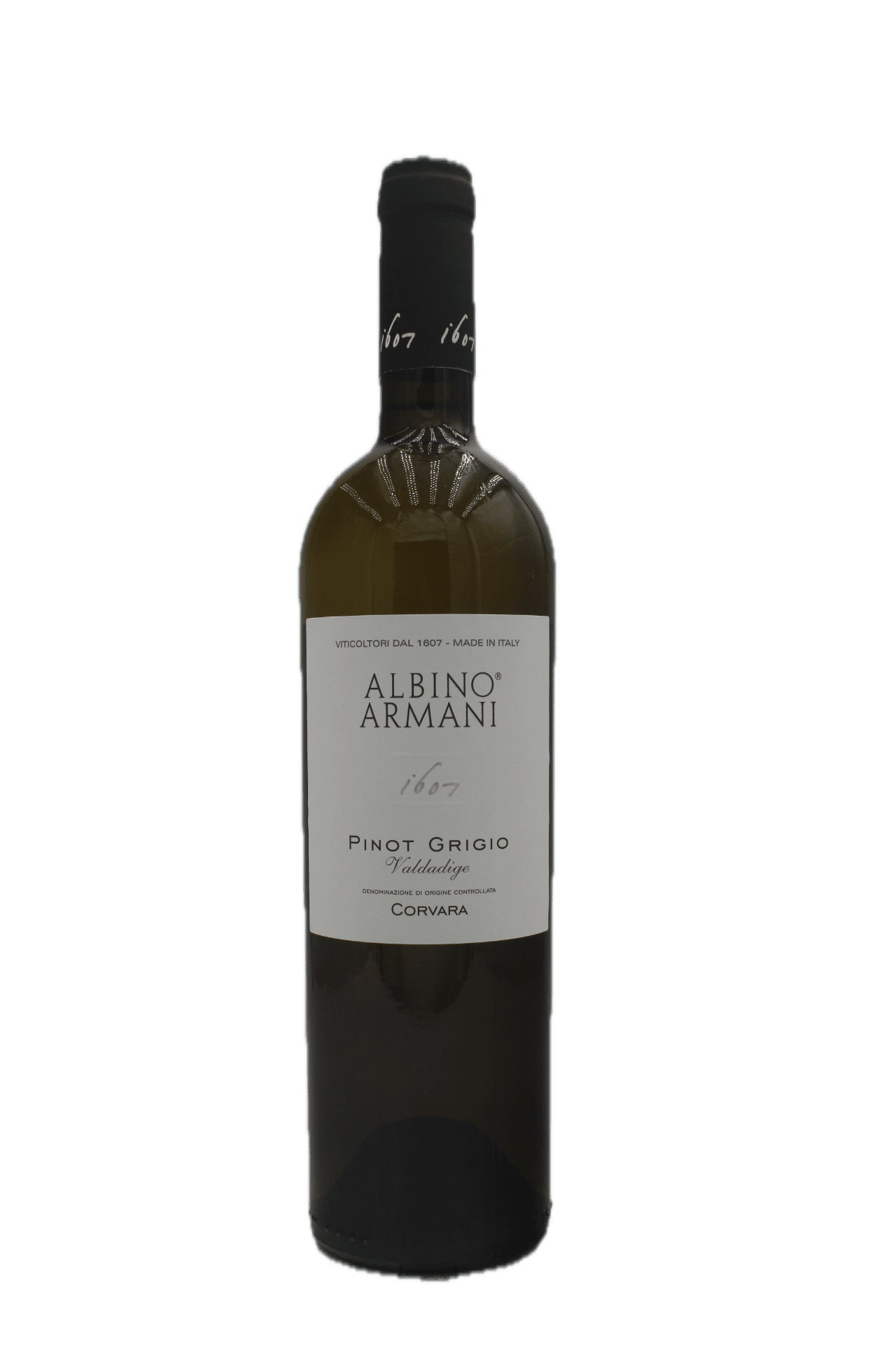 Albino Armani – Pinot Grigio Corvara is een verfijnde witte wijn uit Veneto, Noord-Italië. De druiven groeien op hooggelegen wijngaarden in de Adige-vallei, waar koele berglucht zorgt voor frisheid en aromatische precisie. De wijn wordt volledig van Pinot Grigio gemaakt en deels gerijpt op de fijne lies voor extra ronding en structuur.