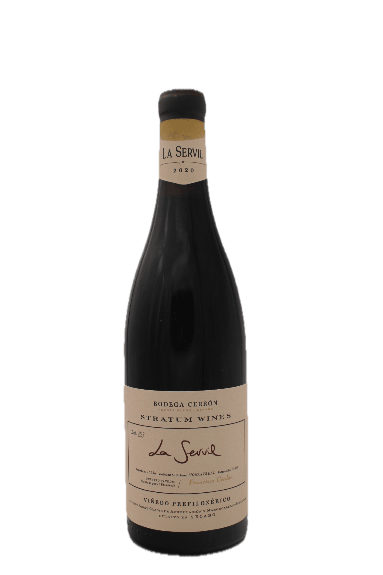 Bodega Cerrón – Stratum ‘La Servil’ is een biodynamische rode wijn uit Jumilla, Spanje, gemaakt van zorgvuldig geselecteerde Monastrell-druiven. Deze wijn toont een diepe robijnrode kleur en een intrigerend aroma van rijp zwart fruit, zoals bramen en bosbessen. Daarnaast ontdek je ook hints van kruiden, aarde en subtiele florale accenten. In de mond heeft hij een elegante structuur, met zachte tannines en een frisse zuurgraad. Dit alles brengt de fruitige en kruidige smaken mooi in balans. De wijn eindigt met een verfijnde, aanhoudende afdronk vol mineraliteit en complexiteit, wat de unieke terroirexpressie van deze wijn benadrukt.