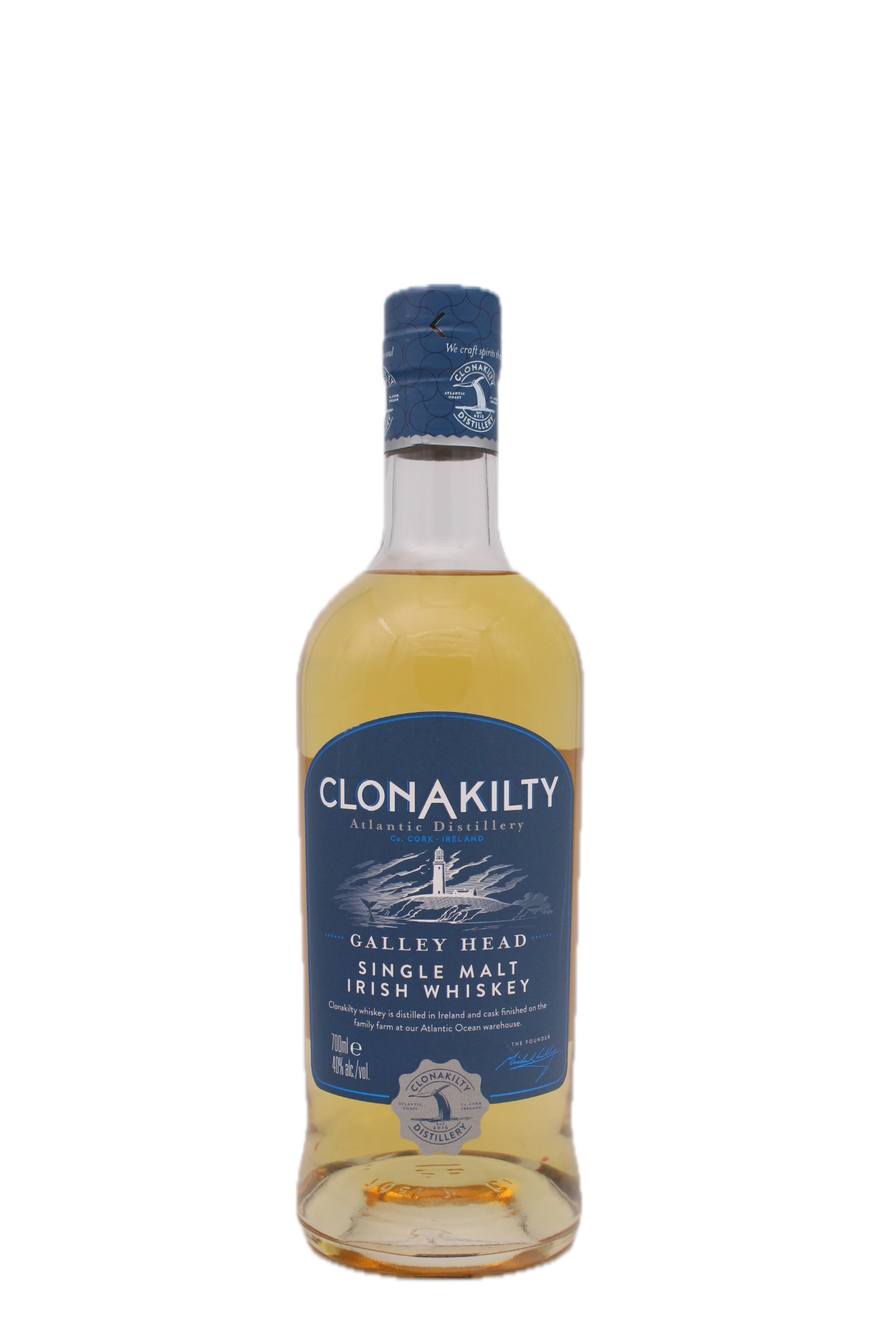De Clonakilty-distilleerderij ligt op een steenworp van de Atlantische kust en is nog vrij nieuw, maar maakt indruk met hun verfijnde, toegankelijke stijl. Ze gebruiken lokaal graan en laten hun whiskey rijpen in het zeeklimaat van West-Cork, wat bijdraagt aan het zachte, afgeronde karakter. Galley Head is hun ode aan de vuurtoren die over de kustlijn waakt.