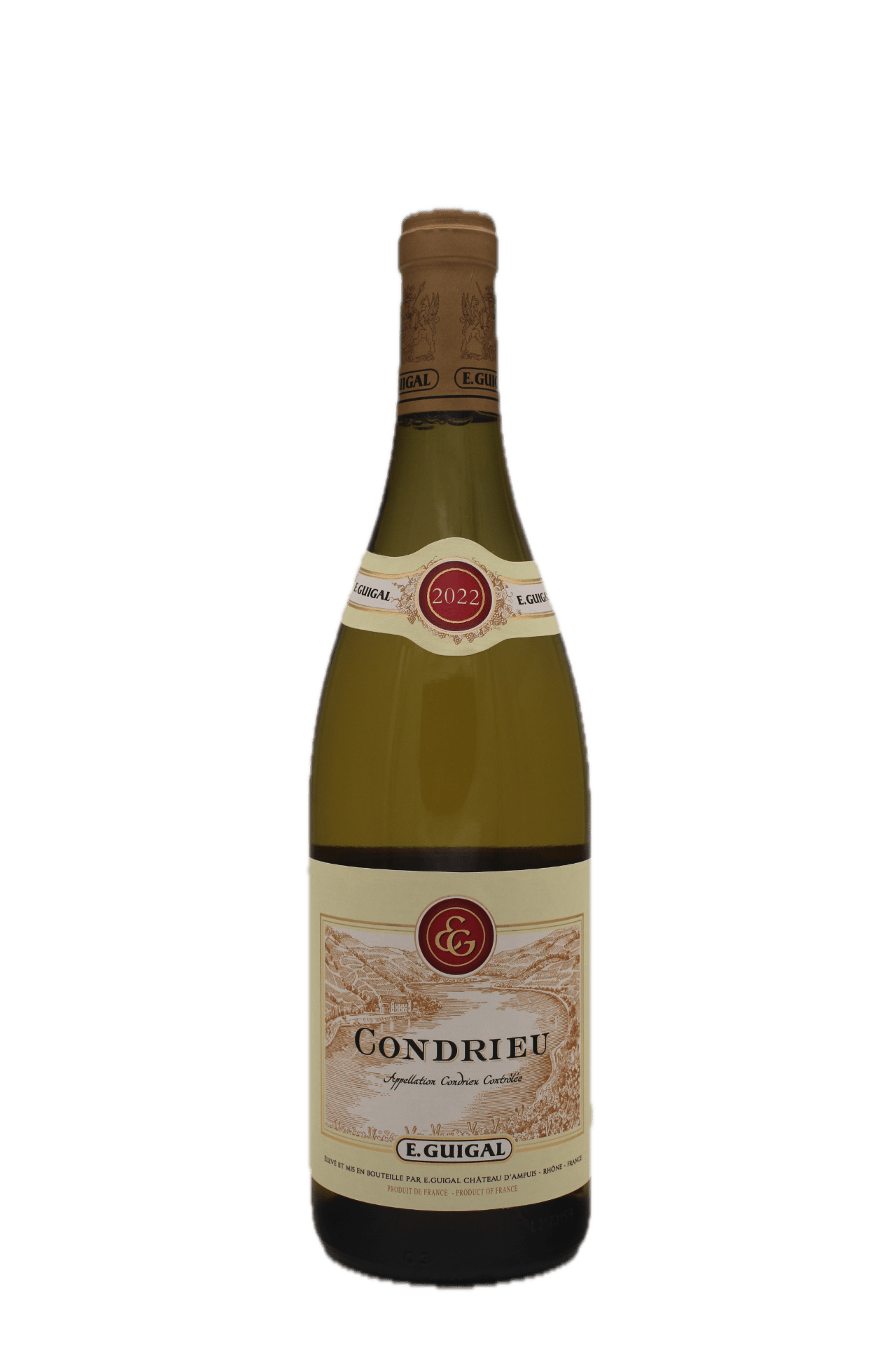 E Guigal – Condrieu 2022 is een verfijnde witte wijn uit de Condrieu-appellatie in de noordelijke Rhônevallei, Frankrijk. Gemaakt van 100% Viognier, biedt deze wijn een expressief en aromatisch profiel. In het glas toont hij een schitterende, goudgele kleur met delicate groene reflecties. Het bouquet opent met intense aroma’s van abrikoos, perzik, en exotisch fruit. Daarnaast ook florale tonen van viooltjes en een subtiele hint van honing. In de mond is de wijn rijk en vol, met een zijdezachte textuur en een mooie balans tussen frisheid en weelderigheid. De afdronk is lang en harmonieus, met een vleugje mineraliteit en een elegante fruitigheid.