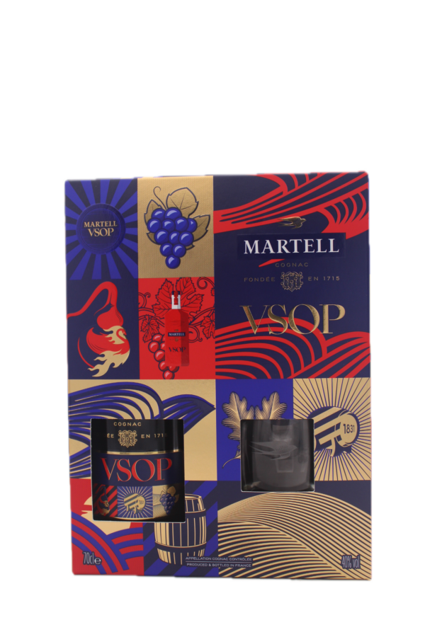 Geschenkverpakking Martell VSOP met 2 glazen (Very Superior Old Pale) is een verfijnde en evenwichtige Cognac van een van de oudste en meest prestigieuze huizen in Frankrijk. Deze geschenkverpakking, inclusief twee elegante Cognacglazen, is perfect voor liefhebbers die willen genieten in stijl of een bijzonder cadeau willen geven.