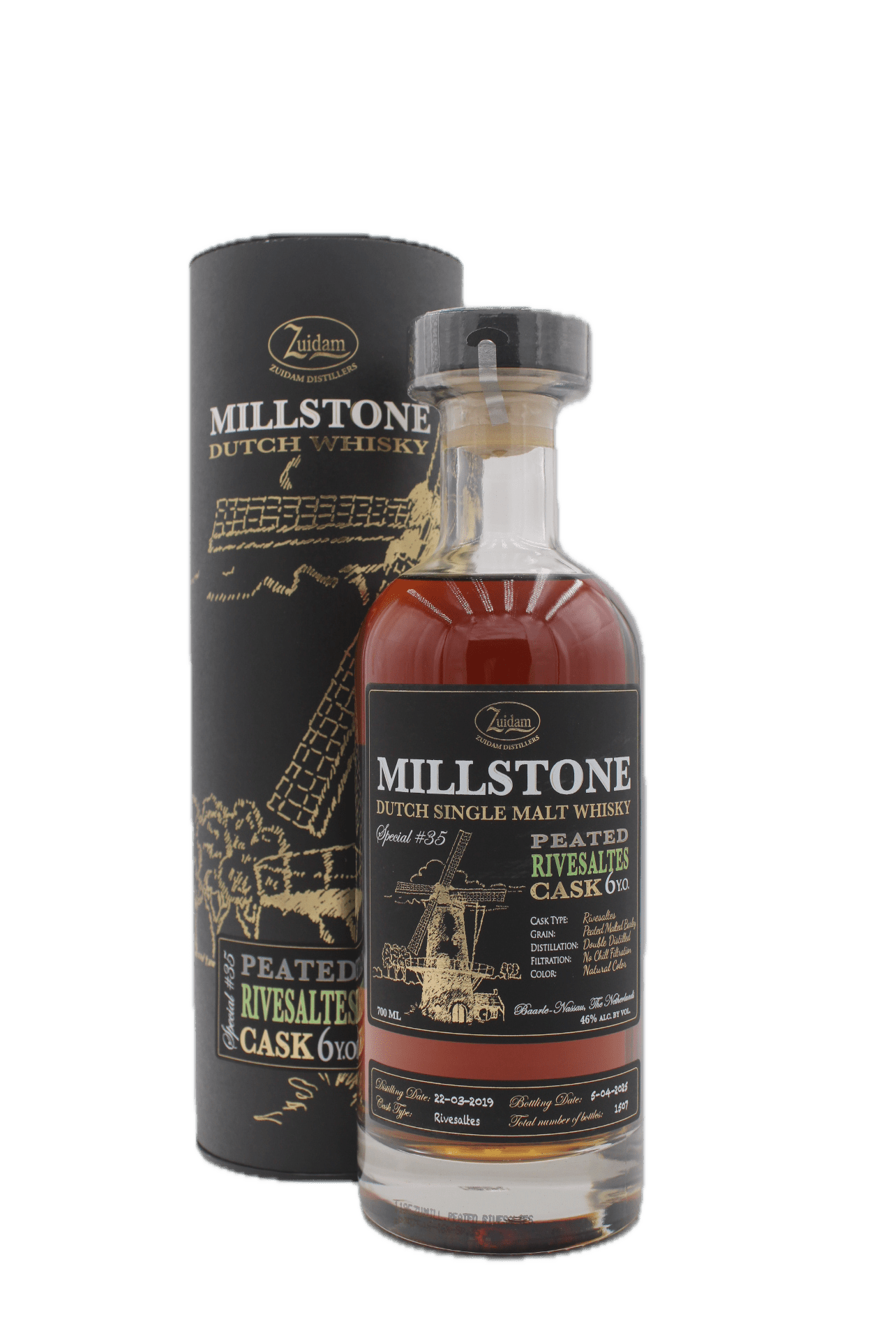 Millstone whisky wordt geproduceerd door Zuidam Distillers in Baarle-Nassau. De familie Zuidam maakt alles nog steeds volledig ambachtelijk, met aandacht voor detail en gebruik van de beste vaten. Door te experimenteren met speciale vatrijpingen, zoals dit Rivesaltes-vat, weten ze unieke smaken te creëren die wereldwijd steeds meer erkenning krijgen.