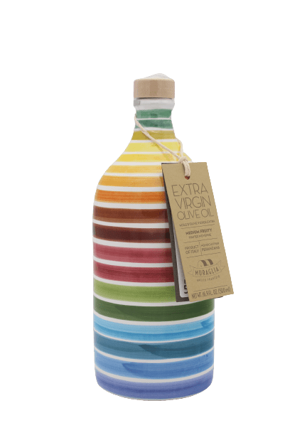 Geniet van de unieke smaak en kwaliteit van Muraglia olijfolie 0,50l. Deze olijfolie producent is een waar juweel uit de wijnregio Puglia in Italië. Deze 0,50 liter fles van Frantoio Muraglia Olive Oil is niet alleen heel erg lekker om te gebruiken bij diverse gerechten. Naast het gebruik ziet de fles er ook nog eens heel leuk uit.