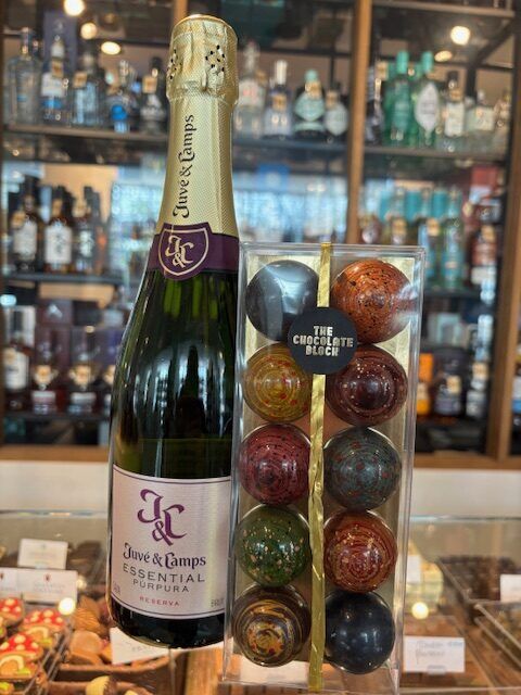 De Juve & Camps Cava is fris, fruitig en sprankelend met een fijne, elegante bubbel. Perfect om een toast uit te brengen of als verfijnd aperitief bij de bonbons.